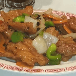 Meaty boneless pork loin sauteed with carrots, onions, and bell peppers, and fermented black beans