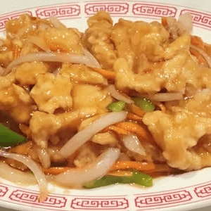 Fillet of fish deep-fried in very light batter then cooked with bell peppers, carrots, onions, and pineapple chunks in sweet and sour sauce