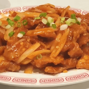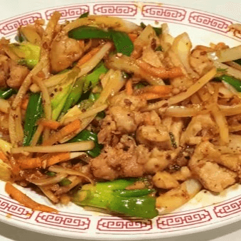 Diced chicken stir-fried with green & yellow onions, shredded carrots, garlic, and hot chili pepper. Spicy.