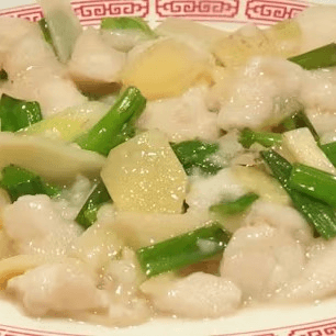 Fillet of fish, sautéed with fresh slices of ginger, green onion, and bamboo shoots. Healthy!