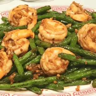 Fresh string beans toss-cooked with prawns in tasty garlic and chili sauce