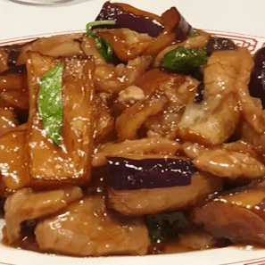 Strips of pork sautéed with bamboo shoots, zucchini, and tree mushroom in spicy sauce