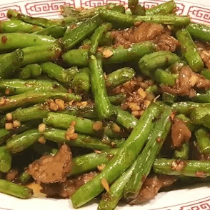 Sliced beef sautéed with fresh string beans with garlic, pickled cabbage, and hot chili