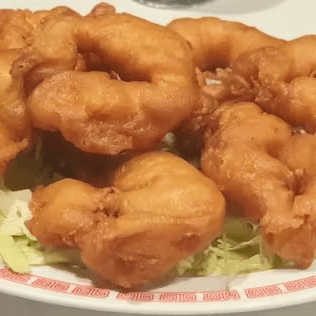 Prawns deep-fried in batter and cooked with sweet and sour sauce