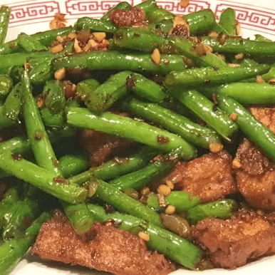 Fresh string beans with tofu sauteed with chili and garlic. Spicy.