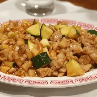 Diced chicken sautéed with almond, bamboo shoots, and zucchini