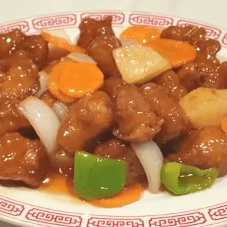 Meaty boneless pork chop strips sautéed with chef's special sweet and sour sauce