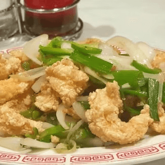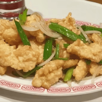 Lightly battered fillet of fish deep-fried and toss-cooked with onions, jalapeños, and seasoning