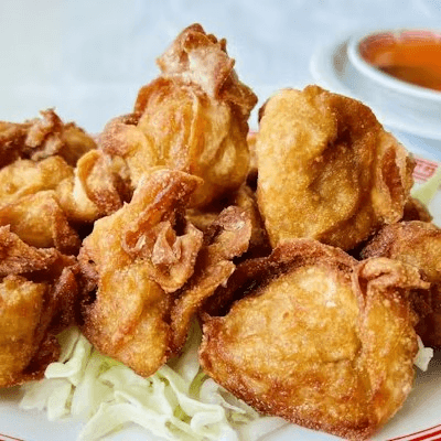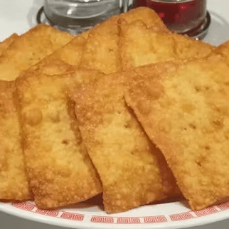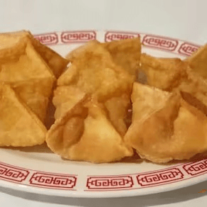 10 pieces. Wonton wrapper, deep fried to golden brown. Served with sweet and sour sauce