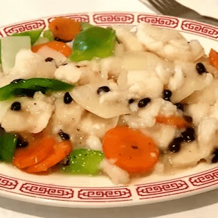 Fillet of fish tossed-cooked with bell peppers, carrots, onions, and delicious fermented black bean sauce