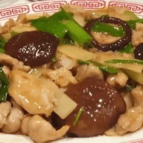Diced chicken sautéed with black mushrooms, bamboo shoots, and green onions