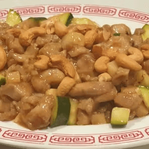 Diced chicken sautéed with cashew, bamboo shoots, and zucchini