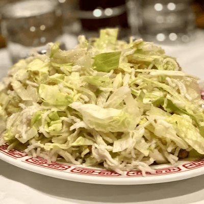Shredded chicken breast, lettuce, and peanuts mixed with special sesame vinaigrette. Dressing packed separately