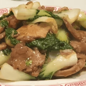 Sliced beef sautéed with Chinese greens (bok choy)