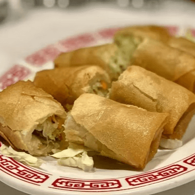 4 pieces. Cabbage, carrots, and onions wrapped into a roll. Deep fried to golden brown