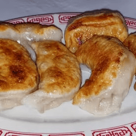 6 pieces. Pork dumpling pan fried on the bottom