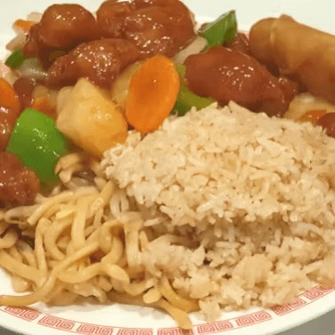 With one egg roll, chow mein and fried rice (both no meat)